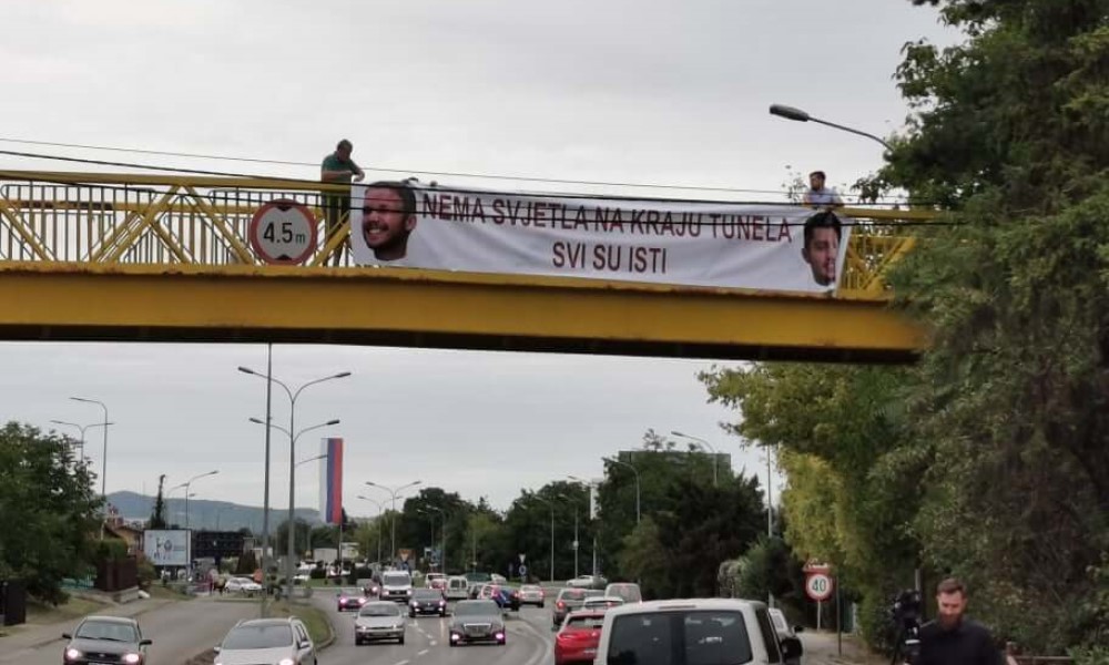 17.08.2021. | 17:39Danas se u Banjaluci, na pasareli na Zapadnom tranzitu nedaleko od vile gradonačelnika Banjaluke Draška Stanivukovića, pojavio transparent sa natpisom: “Nema svjetla na kraju tunela – svi su ist…