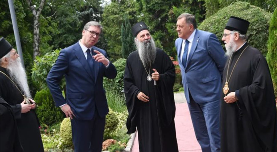 16.07.2022. | 13:33Srpski član Predsjedništva BiH Milorad Dodik sastao se danas u Beogradu sa predsjednikom Srbije Aleksandrom Vučićem, patrijarhom srpskim Porfirijem i članovima Svetog sinoda.