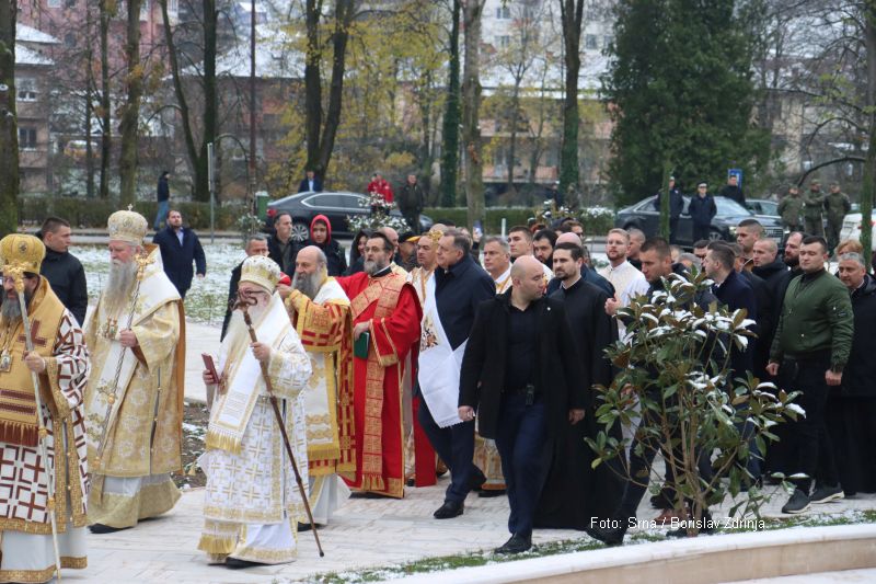 26.11.2023. | 09:40Njegova svetost patrijarh srpski Porfirije osveštao je jutros Hram Svetog Save u Foči, a kum je predsjednik Republike Srpske Milorad Dodik.