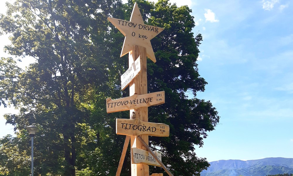 23.05.2021. | 14:40U sklopu Spomen-kompleksa “25. maj 1944” – Titova pećina u Drvaru danas je postavljen drveni putokaz sa natpisima Titovih gradova i kilometarskim udaljenostima od ove opštine.