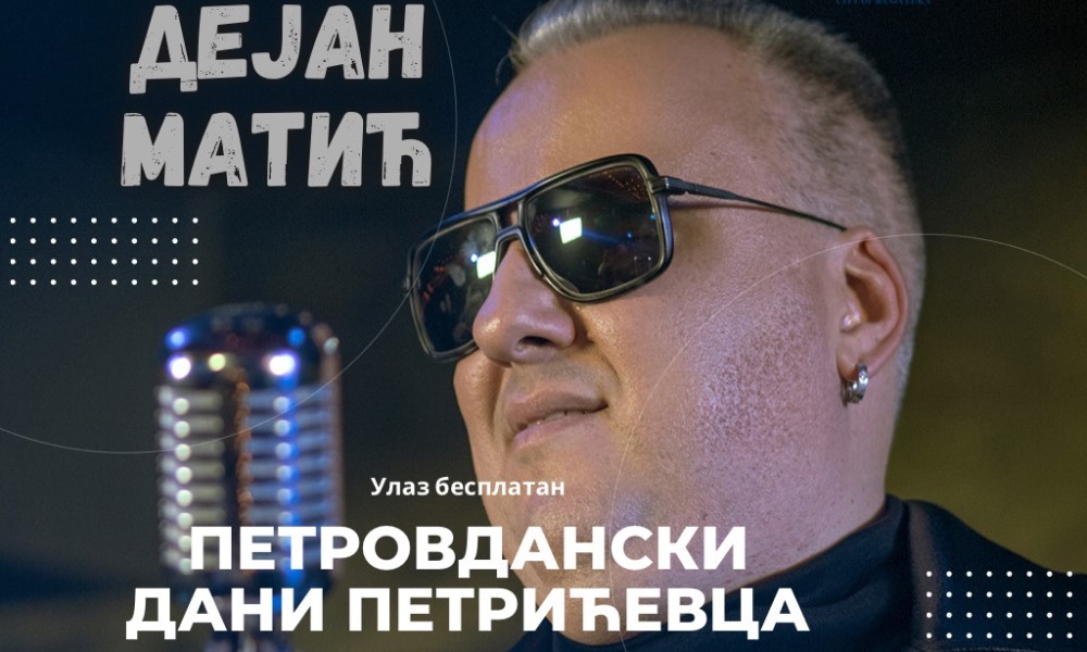11.07.2023. | 11:07Manifestacija „Petrovdanski dani Petrićevca“ biće nastavljena večers koncertom pjevača Dejana Matića. Naime, koncert će biti održan u dvorištu Osnovne škole „Miloš Crnjanski“ od 21.00 časova, a organi…