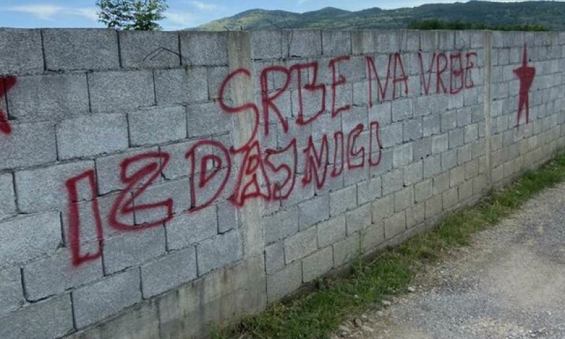 19.05.2021. | 11:22Na zidu u podgoričkom naselju Donja Gorica u toku prethodna dva dana ispisani su grafiti sa šovinističkim i porukama mržnje prema Srbima.