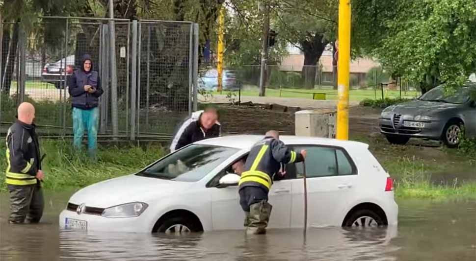 Voda zarobila automobil: Tuzlanski vatrogasci spasavali djecu VIDEO