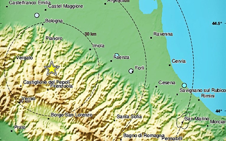 19.04.2022. | 22:38Zemljotres jačine 4 stepena Rihterove skale pogodio je danas okolinu Bolonje u Italiji, saopštio je Evropsko-mediteranski seizmološki zavod.