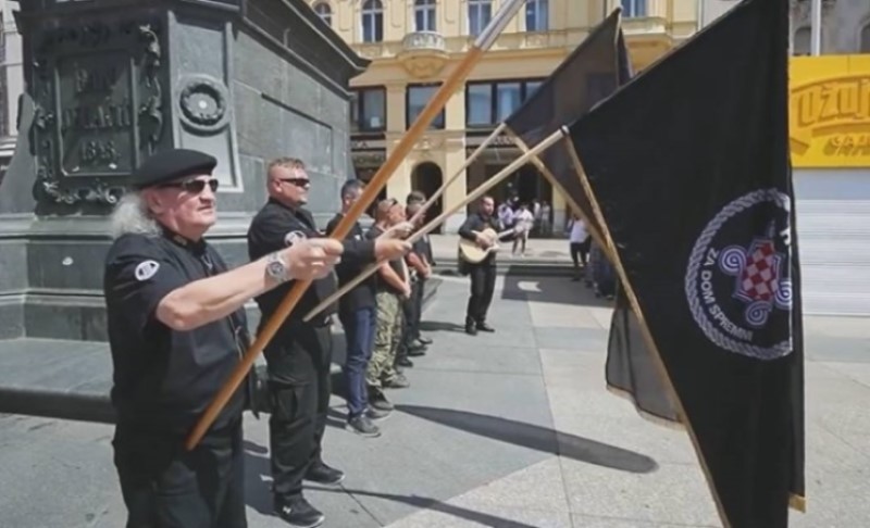 26.06.2021. | 17:30U centru Zagreba, ispod spomenika banu Jelačiću danas se vijorila zastava Hrvatskih oružanih snaga (HOS) sa ustaškom “šahovnicom”, a muškarci u uniformama sa ustaškim obilježjem pjevali su…