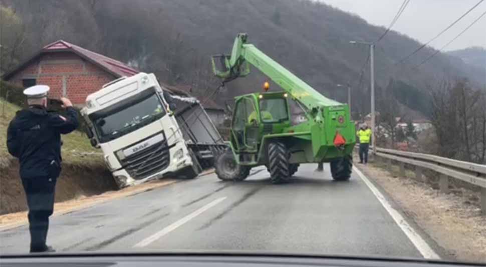 Saobraćajka u Banjaluci: Vozač kamionom završio u kanalu VIDEO