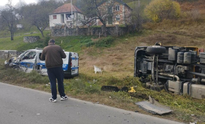 Sudar službenog vozila i dva kamiona! Težak udes – među povrijeđenima i policajci