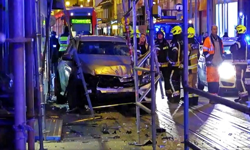 Teška saobraćajka: Mercedes udario ženu na pješačkom, pa se zabio u skelu VIDEO