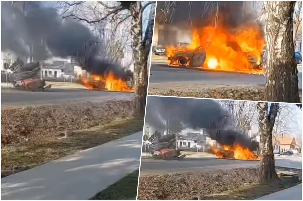 Dramatičan snimak! Udes izazvao požar, crni dim kulja na sve strane VIDEO