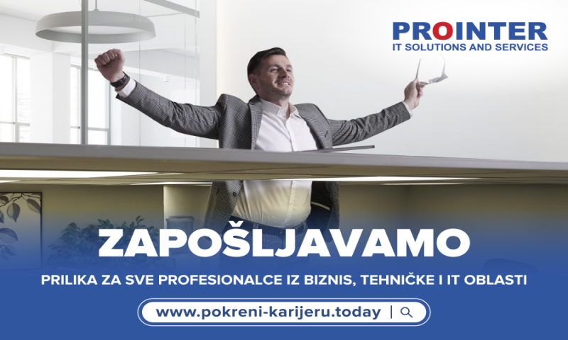18.06.2020. | 14:47Da li ste dostigli plafon u karijeri i spremni ste za promjenu životnog poziva? Ako jeste, kompanija Prointer ITSS pravo je mjesto za vas.