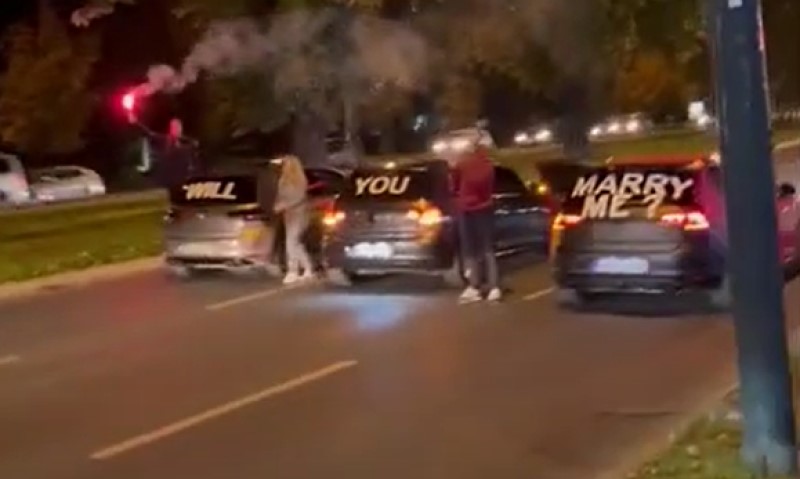 Neobična prosidba: Mladić zaustavio saobraćaj i djevojci postavio “sudbonosno” pitanje VIDEO