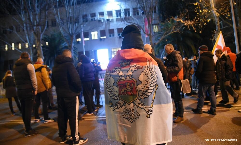 27.01.2022. | 19:58U Podgorici se večeras održava protest zbog najavljenog izglasavanja nepovjerenja aktuelnoj Vladi Crne Gore i mogućeg formiranja manjinske vlade.