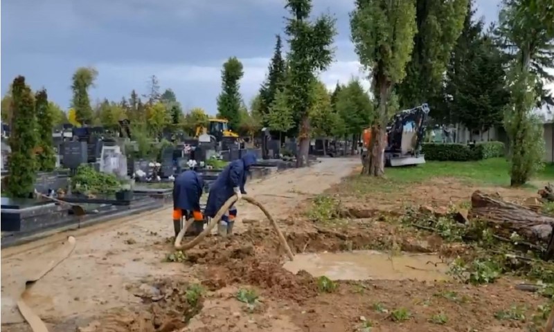 Dio grobova pod vodom: Pukla cijev na zagrebačkom groblju Mirogoj VIDEO