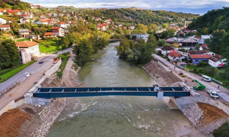 14.10.2020. | 11:21Montirana je čelična konstrukcija budućeg mosta preko Vrbasa u Srpskim Toplicima.