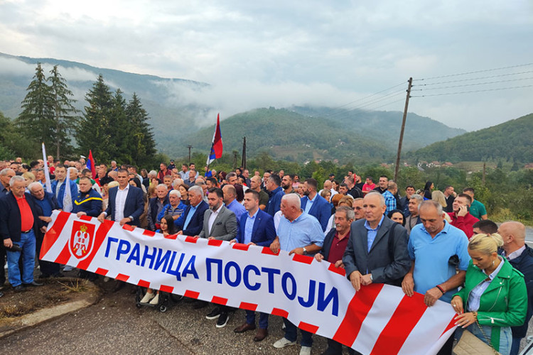 15.09.2023. | 18:21Mirni protest podrške institucijama Republike Srpske i srpskom jedinstvu na međuentitetskoj granici u mjestu Filipovići u Foči završen je uz poruku da se integritet Srpske brani jedinstvom i podrškom …