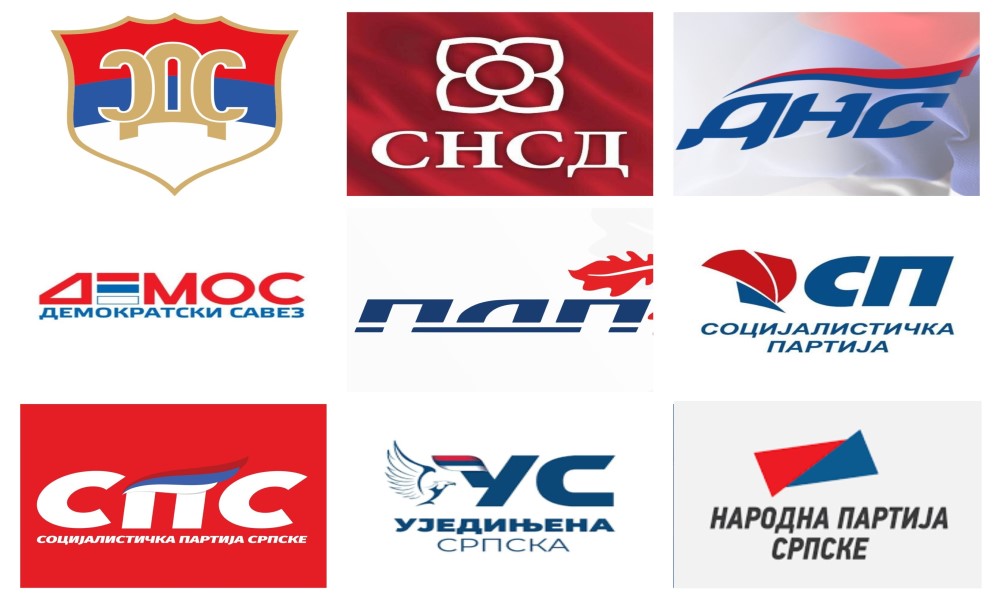 13.03.2023. | 13:01Srpska demokratska stranka (SDS), Partija demokratskog progresa (PDP), Ujedinjena Srpska (US), Demokratski savez (DEMOS), Socijalistička partija Srpske (SPS), Hrvatska demokratska zajednica (HDZ) i So…