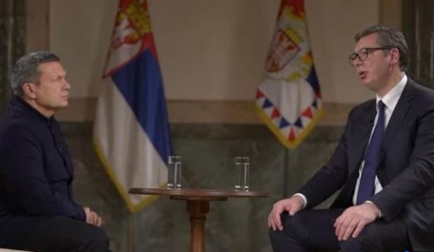 14.11.2021. | 13:51Predsjednik Srbije Aleksandar Vučić dao je intervju čuvenom ruskom novinaru Vladimiru Solovjevu, koji će biti emitovan prije susreta sa Vladimirom Putinom.