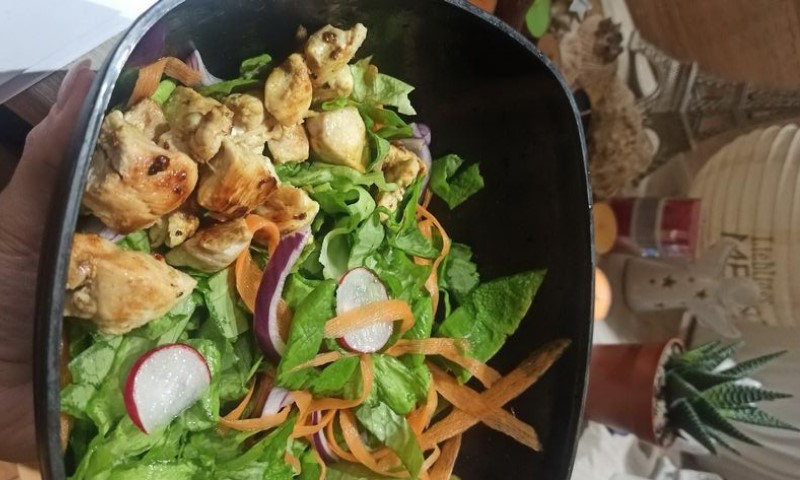07.04.2023. | 06:59Niskokaloričan, zdrav i ukusan obrok koji će vam dati energiju za čitav dan. Potrebno je: 1 komad pilećeg bijelog mesa 10-ak listova zelene salate 1/2 glavice ljubičastog luka 3 rotkvice 1 manja šarga…