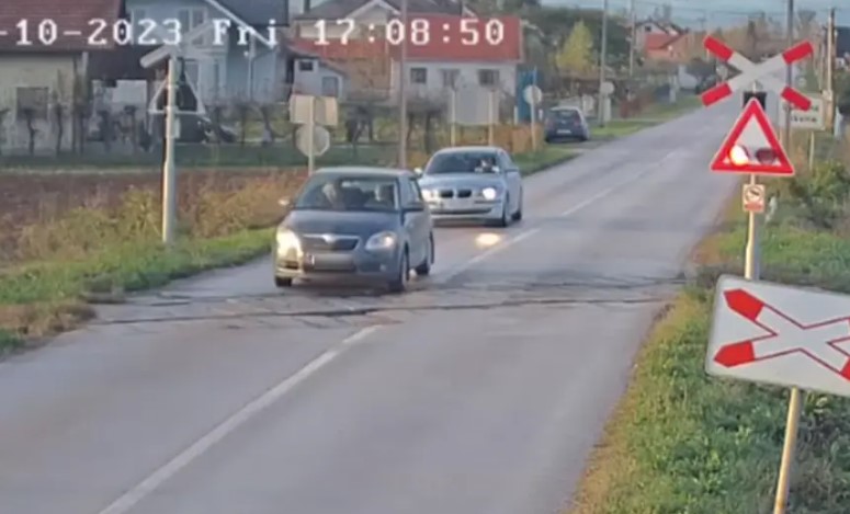 Ignorisao upaljenu signalizaciju: Opasna vožnja na pružnom prelazu VIDEO