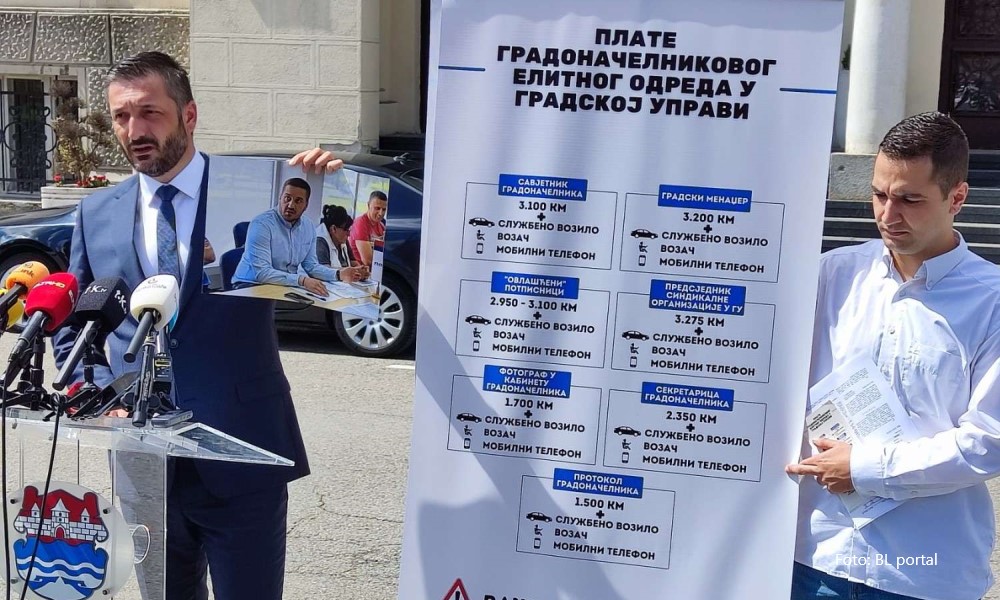 07.06.2023. | 11:28Predsjednik Skupštine grada Banjaluka Ljubo Ninković danas je ispred Gradske uprave održao konferenciju za novinare na kojoj je prikazao plate najbližih u saradnika gradonačelnika Draška Stanivukovića…