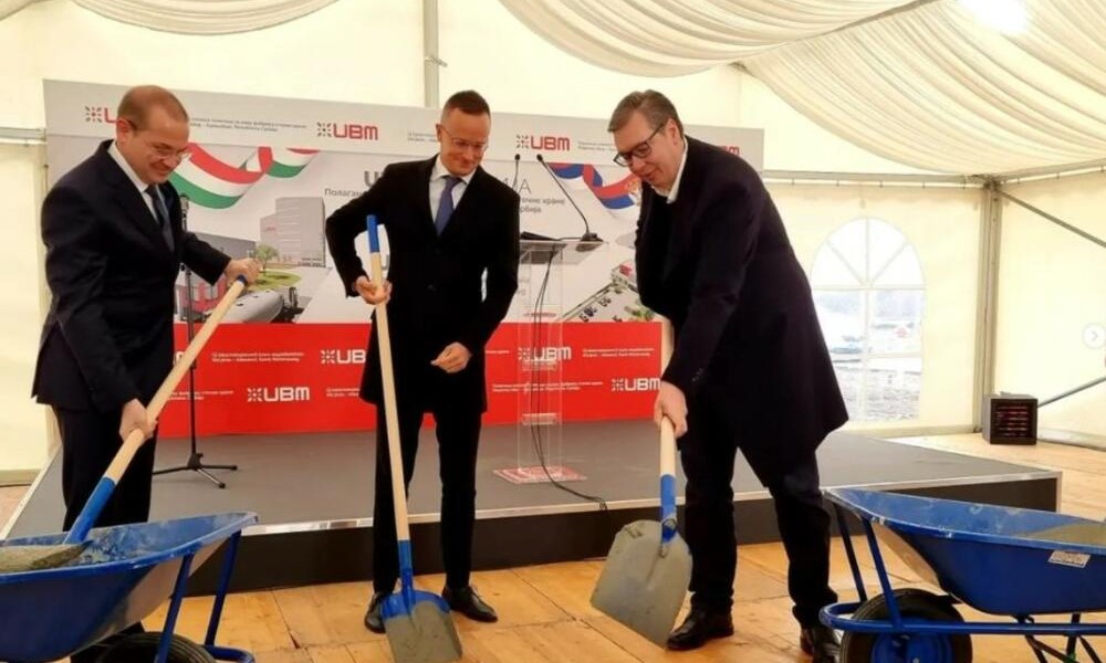09.03.2022. | 09:48Predsjednik Srbije Aleksandar Vučić i ministar spoljnih poslova Mađarske Peter Sijarto prisustvovali su polaganju kamena temeljca za izgradnju fabrike stočne hrane mađarske UBM grupe u Adaševcima kod …