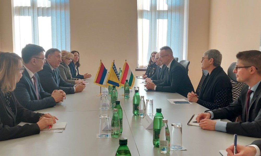 05.04.2022. | 10:10Srpski član Predsjedništva BiH Milorad Dodik i predsjedavajući Savjeta ministara Zoran Tegeltija sastali su se danas u Mostaru sa ministrom inostranih poslova Mađarske Peterom Sijartom, čija je zemlja…