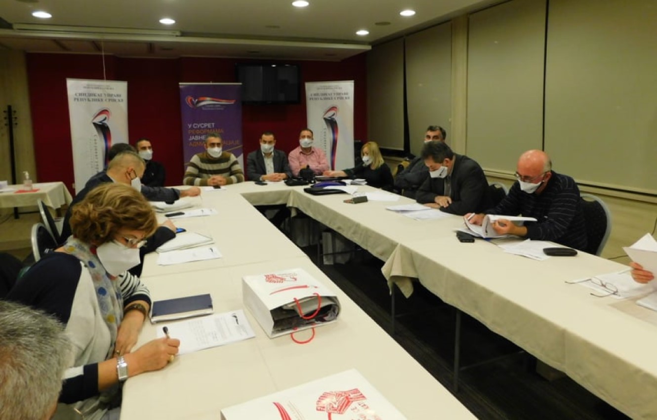 11.12.2020. | 16:10Skupština Sindikata uprave Republike Srpske podržala je danas principe mjera Ekonomske politike i budžet Srpske za narednu godinu u pogledu održavanja postojeće visine plata, kao i da se uštede u budž…