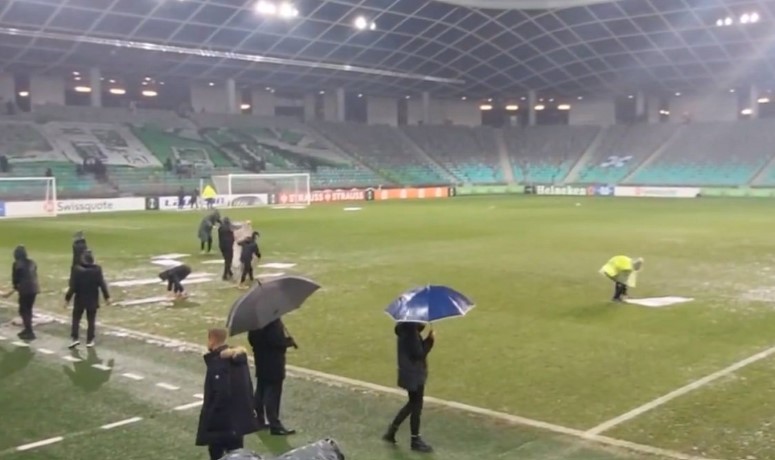 Neobičan način: Slovenci peškirima sušili fudbalski teren (VIDEO)