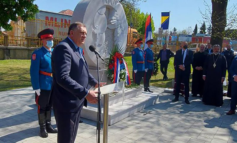 24.04.2021. | 10:50Srpski član i predsjedavajući Predsjedništva BiH Milorad Dodik i predsjednik Republike Srpske Željka Cvijanović otkrili su danas u Gradišci spomen-obilježje vojnicima i civilima poginulim u zločinačko…