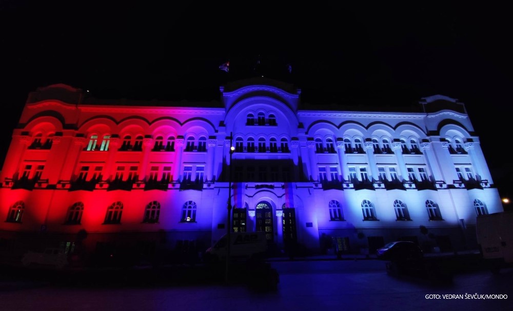 Banjaluka: Zgrada Gradske uprave u bojama srpske trobojke
