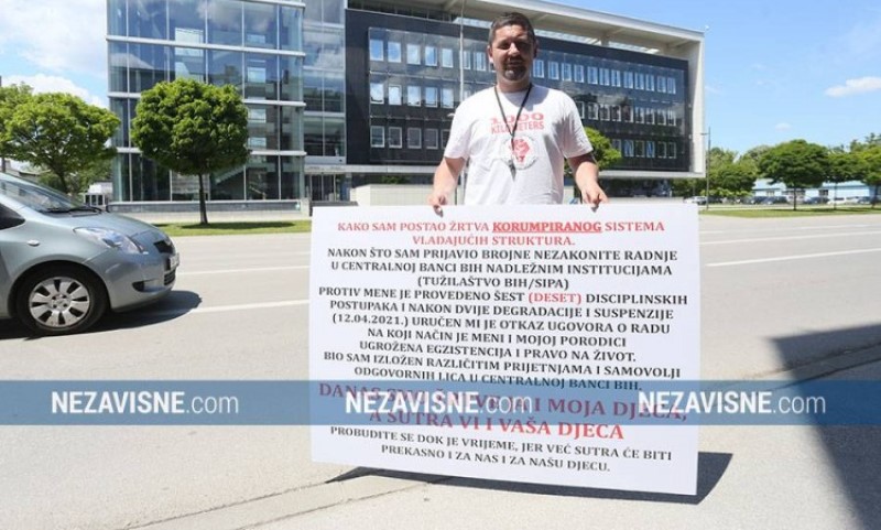 Krenuo iz Banjaluke! Predsjednik Sindikata štrajkovao ispred Centralne banke BiH