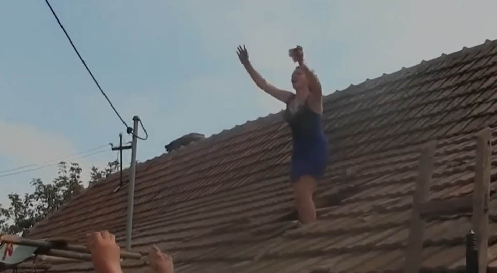 Slavlje izmaklo kontroli: Kuma se popela na krov pa bacala crijepove VIDEO
