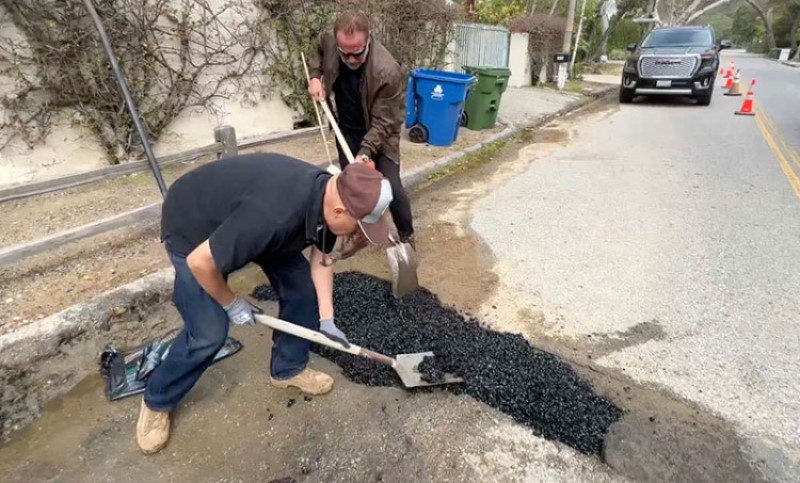 Glumac uzeo stvar u svoje ruke: Švarceneger asfaltirao rupu na putu VIDEO