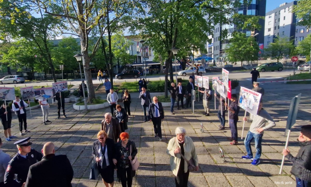 Policija morala reagovati: Grupa Banjalučana sa transparentima ispred dvorane Borik FOTO/VIDEO
