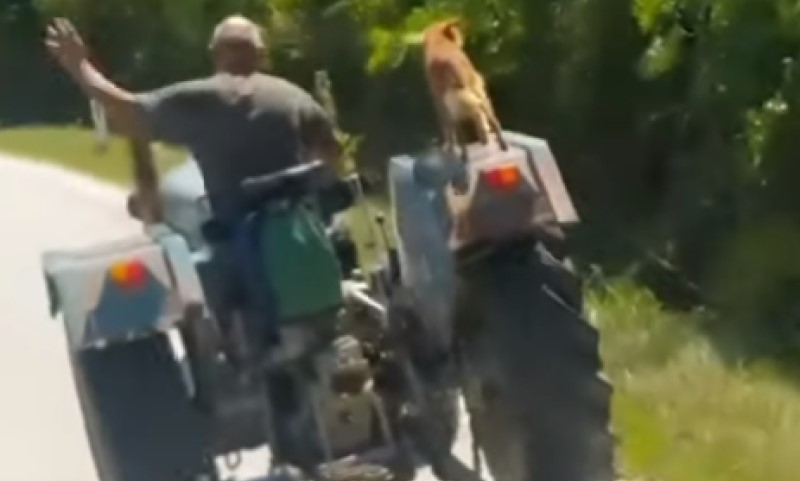 Neobičan prizor popravlja dan! Čovjek i njegov najbolji prijatelj – pas na traktoru VIDEO