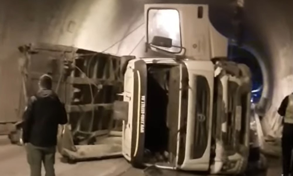 Saobraćaj bio blokiran tri sata: Uklonjen prevrnuti kamion iz tunela VIDEO