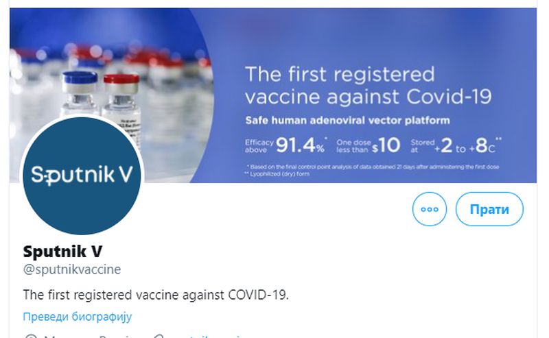 Tvitter ograničio pristup nalogu ruske vakcine „Sputnik V“