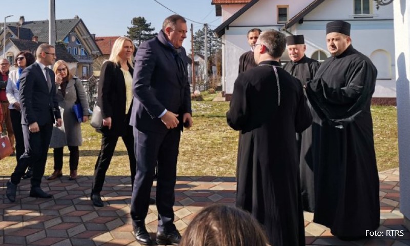 03.03.2022. | 14:38Srpski član Predsjedništva BiH Milorad Dodik i predsjednik Republike Srpske Željka Cvijanović posjetili su danas u Prnjavoru Ukrajinsku crkvu Preobraženja Gospodnjeg.