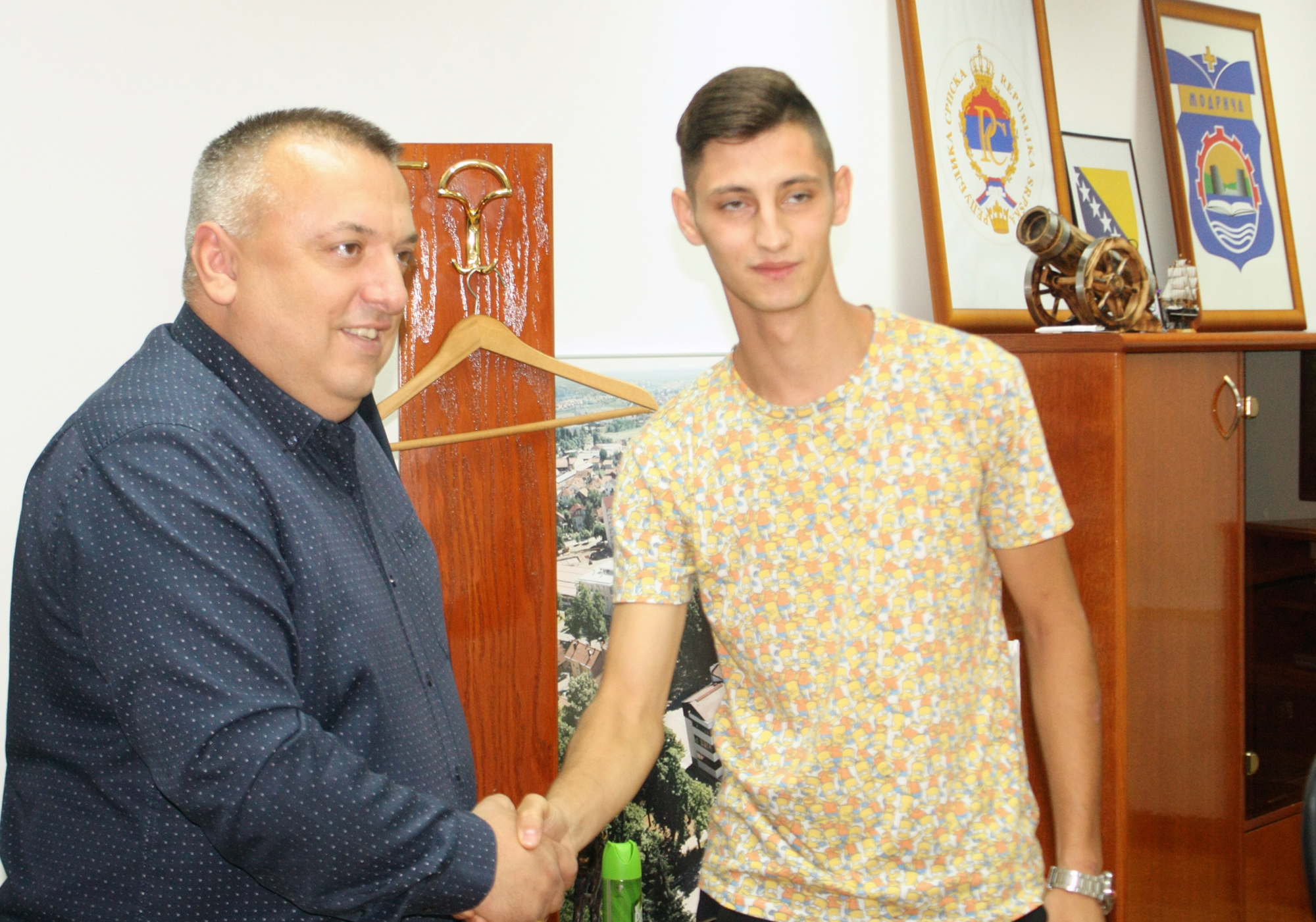 13.08.2021. | 19:28Načelnik opštine Modriča Jovica Radulović primio je danas Milana Jovića, pripadnika lokalne Teritorijalne vatrogasne jedinice (TVJ), koji je učestvovao u akciji spasavanja Suada Janarca (62) iz presuš…