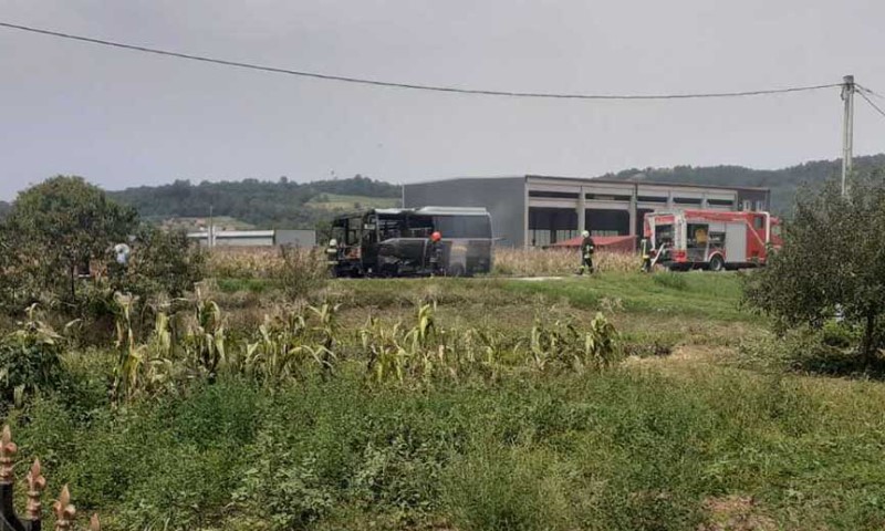 Na terenu policija i vatrogasci: Zapalio se autobus na cesti kod Doboja VIDEO