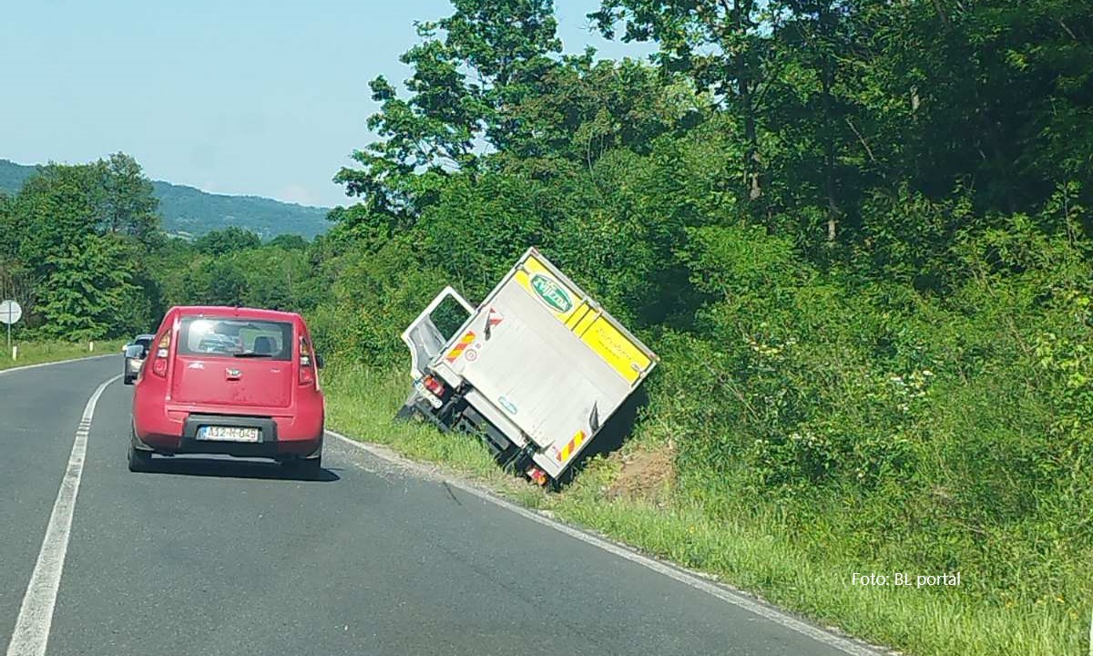 Vozači, oprez! Nesreća na putu Banjaluka-Prijedor, kamion završio u kanalu FOTO