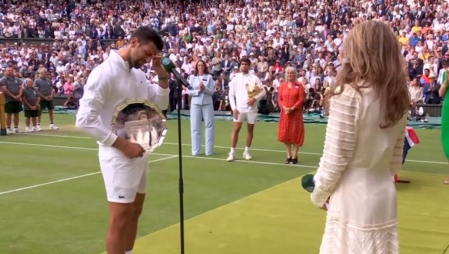 17.07.2023. | 07:43Španski teniser Karlos Alkaras skinuo je vimbldonsku krunu Novaku Đokoviću u epskom finalu slavivši sa 3:2 u setovima. Teško je pao poraz Đokoviću koji poslije meča nije uspio da zadrži suze, ali je k…