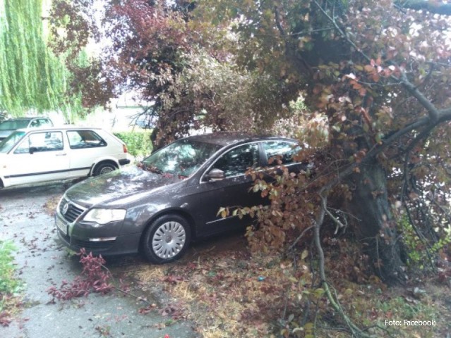 Vjetar obarao stabla, oštećeni automobili: Jako nevrijeme pogodilo Brod VIDEO