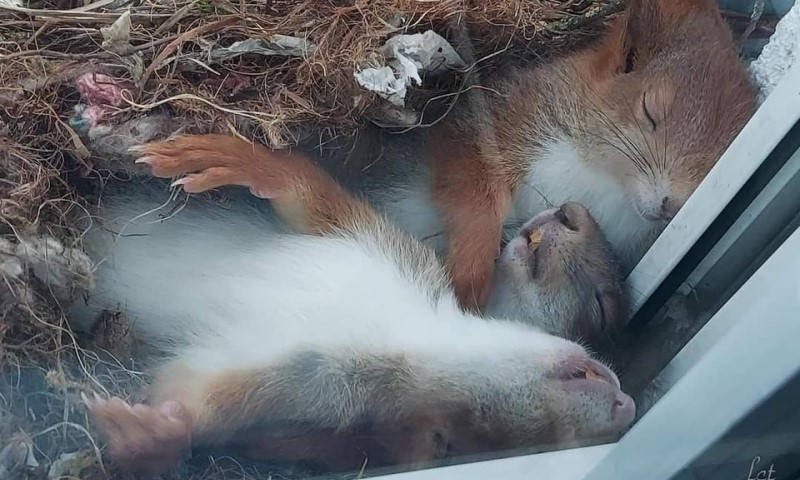 Popodnevni odmor: Simpatične vjeverice zagrljene spavaju u gnijezdu