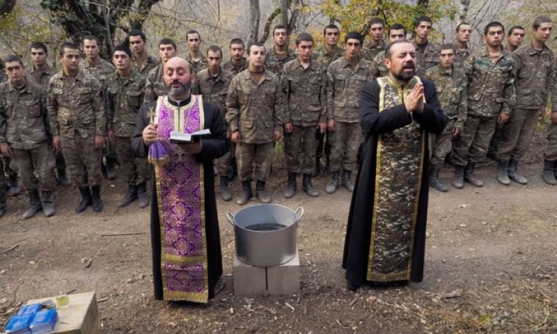 02.11.2020. | 19:59Jermenski vojnici, koji nisu bili kršteni, primili su vjeru kraj vojnog kampa, koji je podignut nedaleko od fronta u Nagorno-Karabahu.