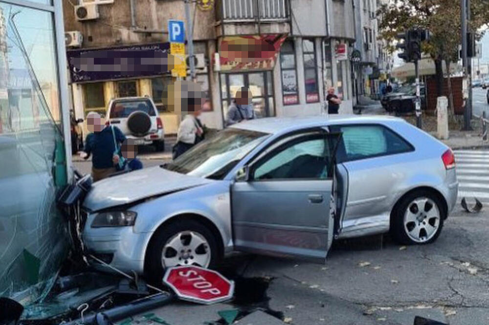 Karambol u centru grada: Audijem udario u zgradu, uletio u izlog FOTO